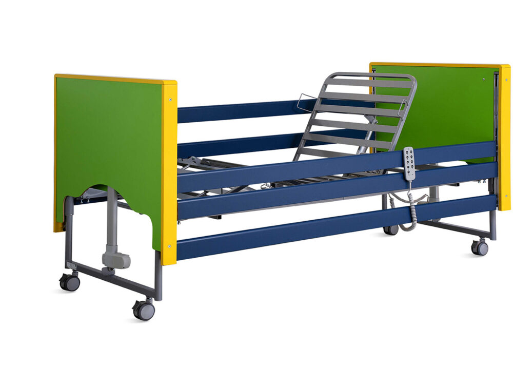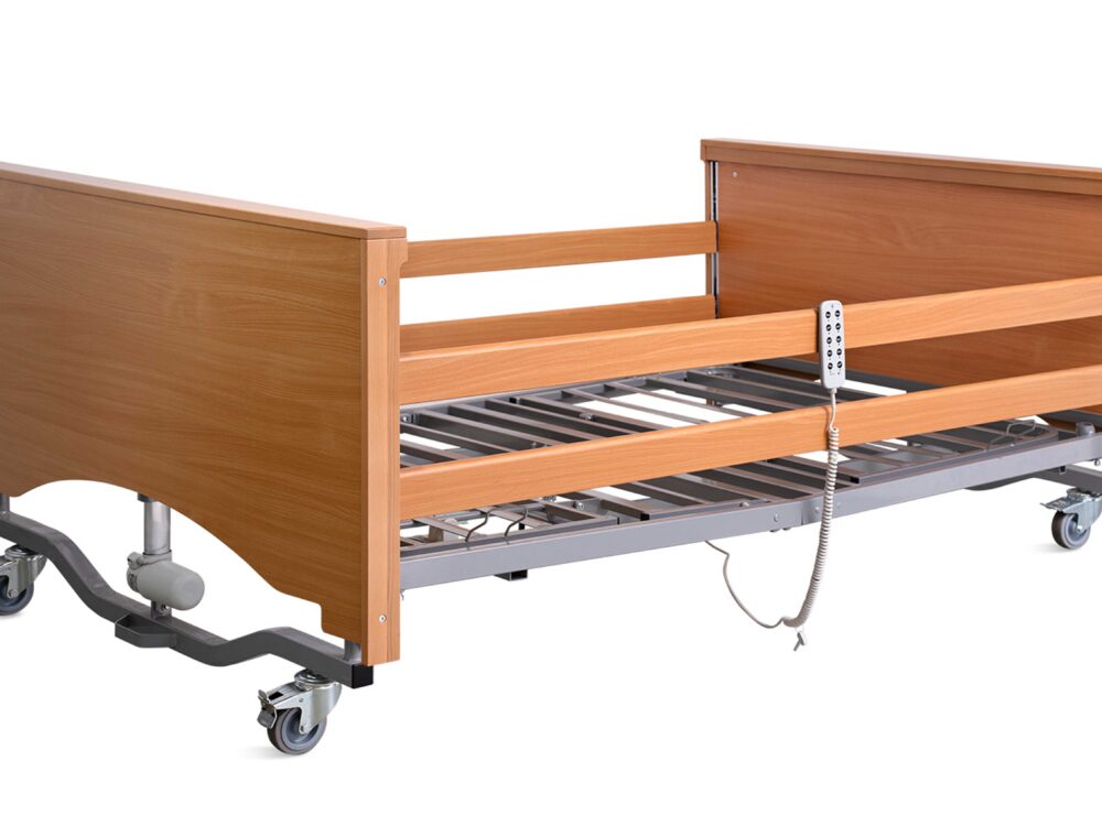 The GRATO 2 Manual Bed blends modern aesthetics with practical design, featuring elegant head and foot boards with integrated protective corners and space-saving bumper wheels. Built for durability and smooth operation, it boasts precision robotic welding, eco-friendly materials, and user-friendly hand cranks designed to last through intensive use. Ideal for reliable and comfortable patient care.