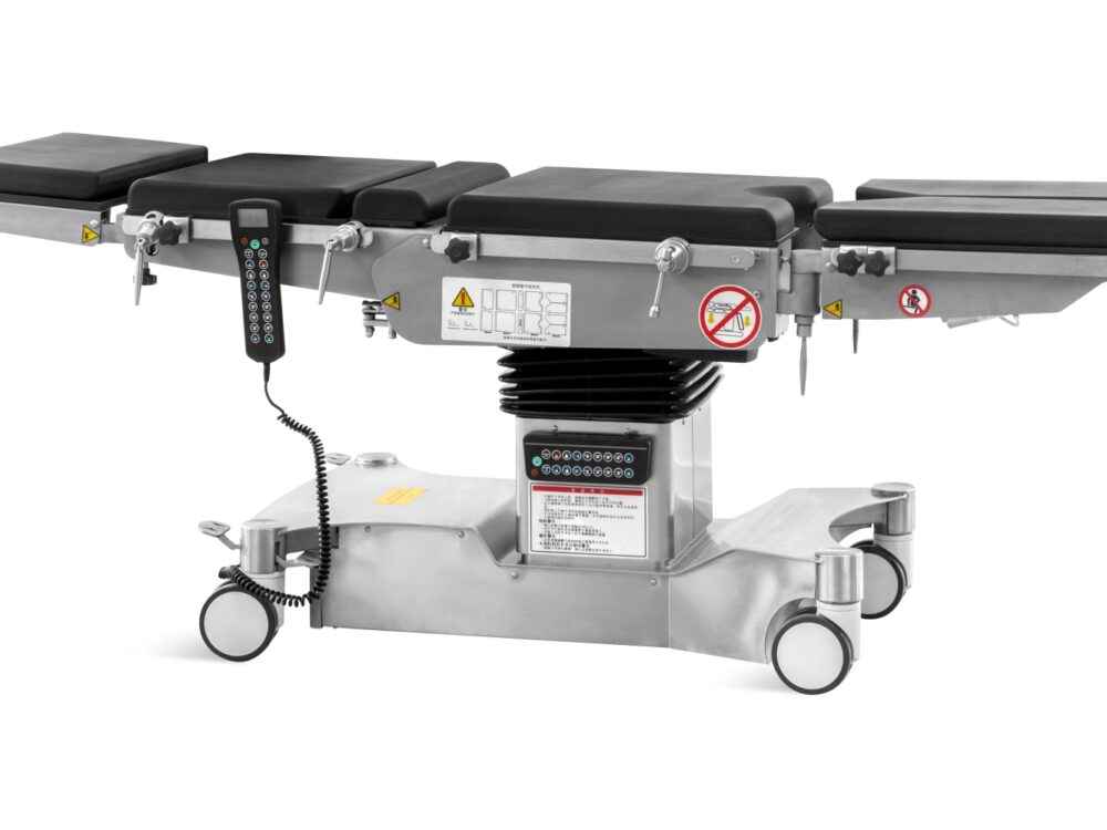 Mesa de operações eléctrica com uma base em aço inoxidável 304 de alta resistência, design sem costuras e compatibilidade com braço em C/raios X. Inclui sistema de controlo duplo, placa de pernas motorizada, ponte de rim manual e bateria de reserva de longa duração. O colchão impermeável e sem costuras e as rodas HAION de rolamento suave garantem conforto e mobilidade.